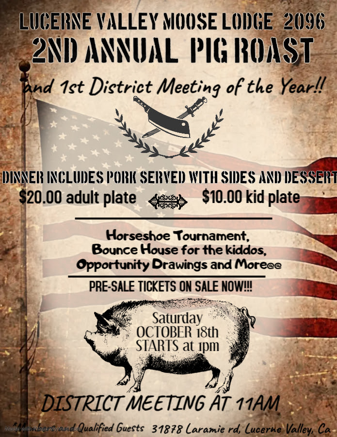 Disclaimer:  The Loyal Order of Moose is a private organization.  Activities and events referred to on this Website and in the Moose Newsletter are available to Members in good standing and their qualified guests.  This Website is for informational purposes only with proprietary information intended for Members only.  General information is provided for the public at large but should not be construed as solicitation for membership.  This Website is an initiative of the Big Bear Moose Lodge 2085, Fawnskin, California, and is not sanctioned by the Loyal Order of the Moose, Moose International, or any subsidiary thereof.  All logos, trademarks, and service marks pertaining to the Loyal Order of Moose and / or its programs or degrees are Copyright Moose International, Inc., Mooseheart, Illinois, USA.