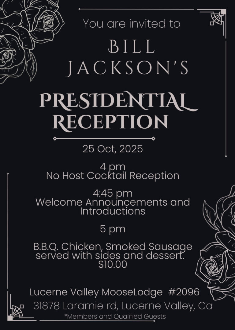 Disclaimer: The Loyal Order of Moose is a private organization. Activities and events referred to on this Website and in the Moose Newsletter are available to Members in good standing and their qualified guests. This Website is for informational purposes only with proprietary information intended for Members only. General information is provided for the public at large but should not be construed as solicitation for membership. This Website is an initiative of the Big Bear Moose Lodge 2085, Fawnskin, California, and is not sanctioned by the Loyal Order of the Moose, Moose International, or any subsidiary thereof. All logos, trademarks, and service marks pertaining to the Loyal Order of Moose and / or its programs or degrees are Copyright Moose International, Inc., Mooseheart, Illinois, USA.